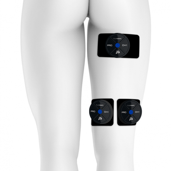You’ll need two 2.75” x 4” electrodes and four 2.75” x 2.75” electrodes for the hamstring muscles. Place the 2.75” x 4” electrode vertically as high up on both hamstrings as you can. For best results, place them where the hamstring and glute meet. Next, place two 2.75” x 2.75” electrodes side by side at the bottom of the hamstrings at least a couple inches apart.